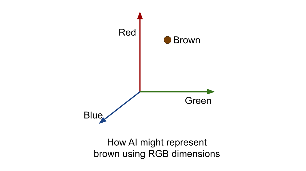 In May 2024, Anthropic published Scaling Monosemanticity. Using sparse autoencoders, they decomposed the internal activations of Claude 3 Sonnet into interpretable components. They found millions of recognizable patterns: a "Golden Gate Bridge" feature, a "code bugs" feature, a "sycophantic praise" feature. In our prompt, they can find “brown” as a feature. These features are a combination of dimensions. For example, the dimensions could be: Red, Green, Blue. Every color could be a coordinate in the 3 dimensional RGB axis. Brownish could be (165, 120, 60). Bluish could be (40, 50, 120).